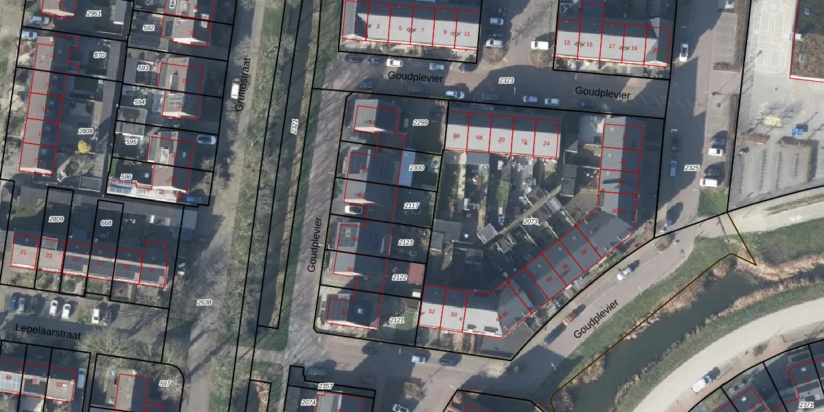 Gebruik de zoekbalk of klik op een perceel om informatie over het perceel te bekijken.