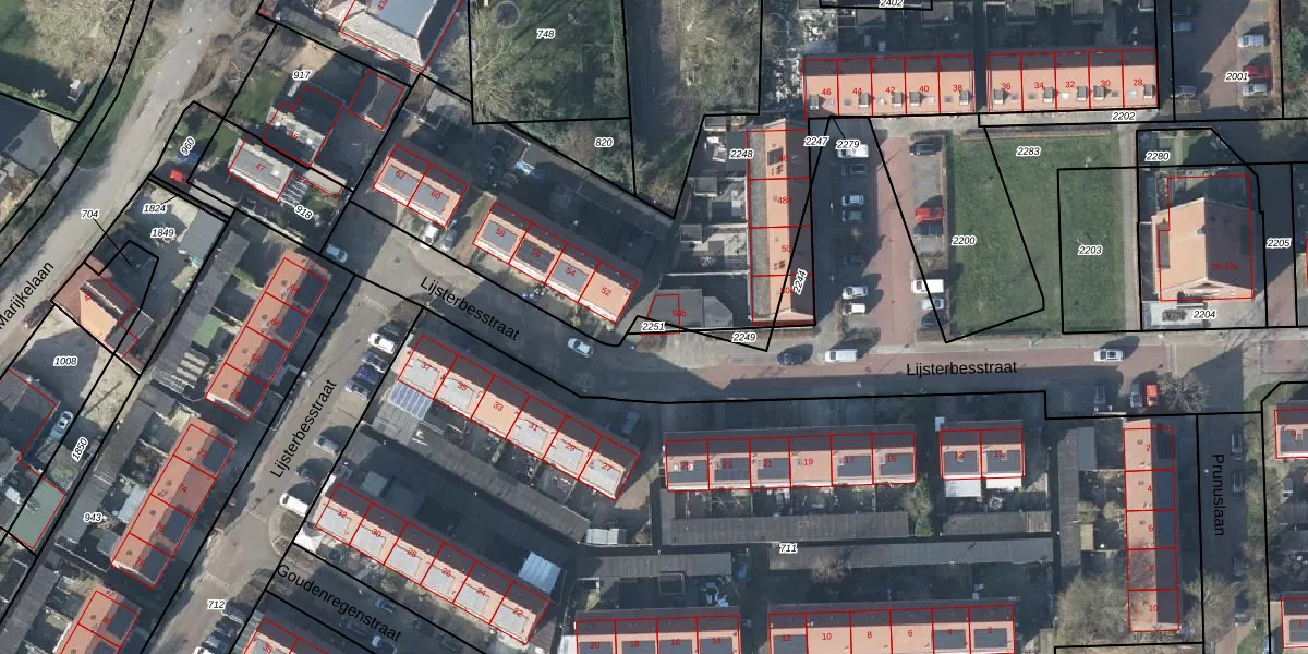 Gebruik de zoekbalk of klik op een perceel om informatie over het perceel te bekijken.