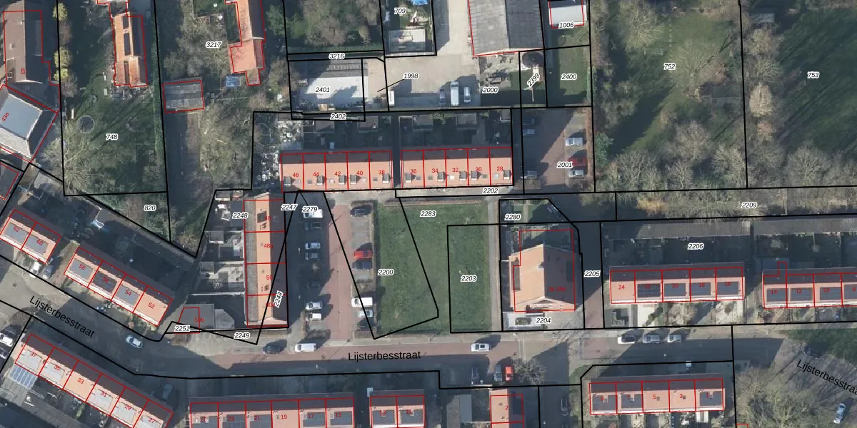 Gebruik de zoekbalk of klik op een perceel om informatie over het perceel te bekijken.