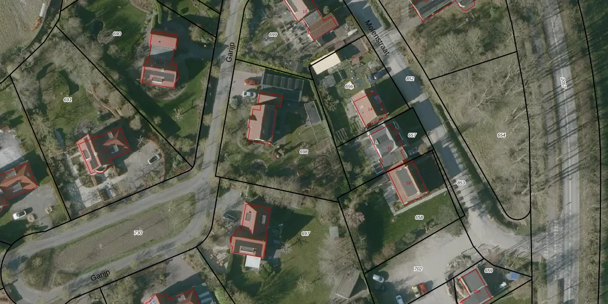 Gebruik de zoekbalk of klik op een perceel om informatie over het perceel te bekijken.