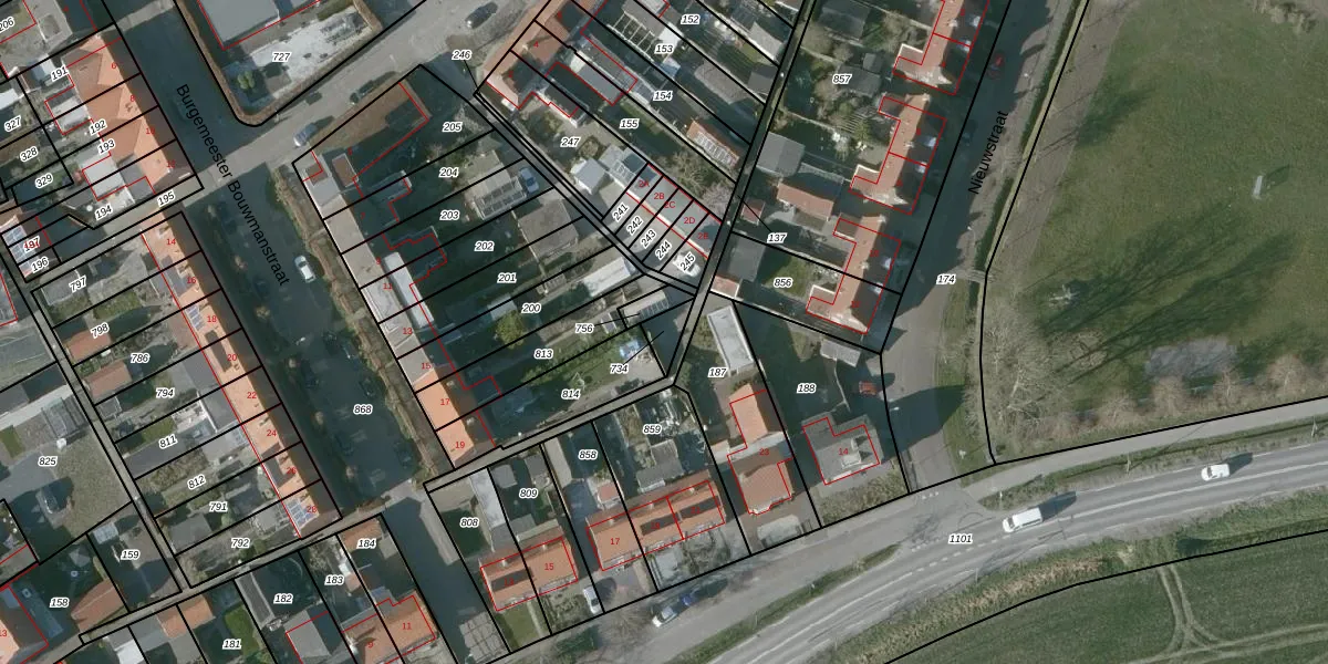 Gebruik de zoekbalk of klik op een perceel om informatie over het perceel te bekijken.