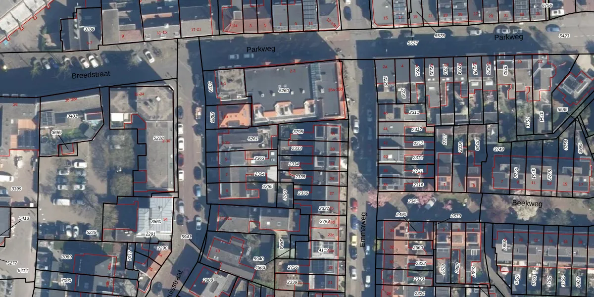 Gebruik de zoekbalk of klik op een perceel om informatie over het perceel te bekijken.