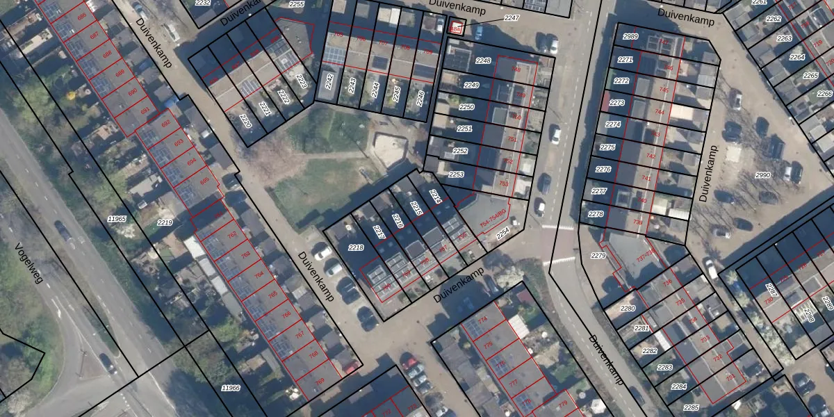 Gebruik de zoekbalk of klik op een perceel om informatie over het perceel te bekijken.