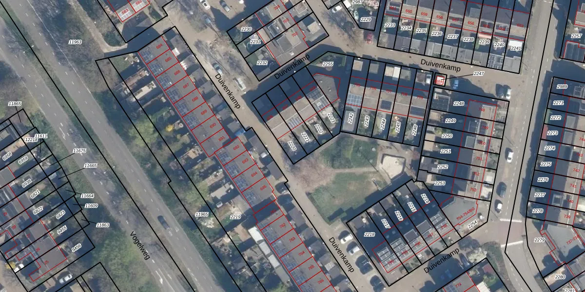 Gebruik de zoekbalk of klik op een perceel om informatie over het perceel te bekijken.