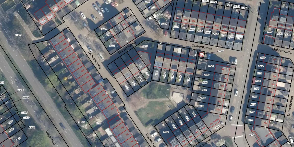 Gebruik de zoekbalk of klik op een perceel om informatie over het perceel te bekijken.