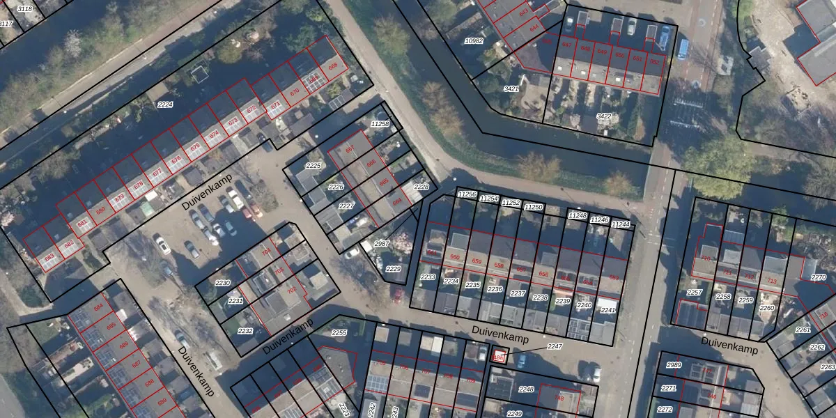 Gebruik de zoekbalk of klik op een perceel om informatie over het perceel te bekijken.