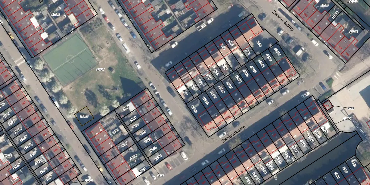 Gebruik de zoekbalk of klik op een perceel om informatie over het perceel te bekijken.