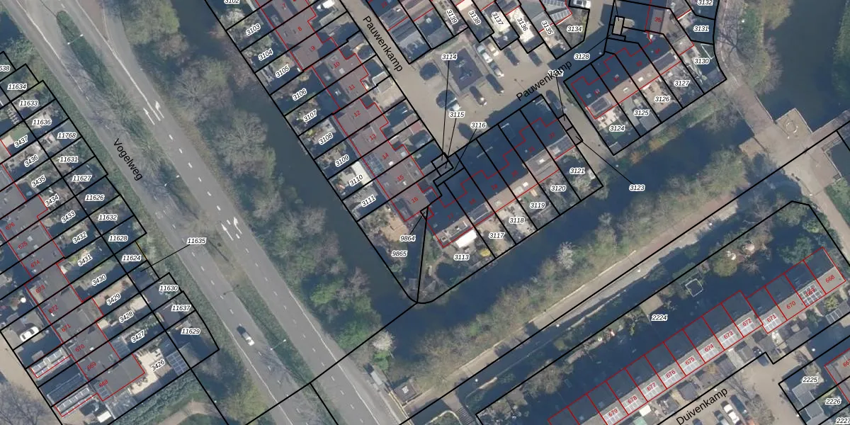 Gebruik de zoekbalk of klik op een perceel om informatie over het perceel te bekijken.