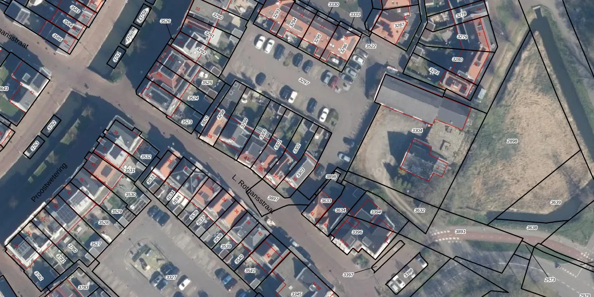 Gebruik de zoekbalk of klik op een perceel om informatie over het perceel te bekijken.