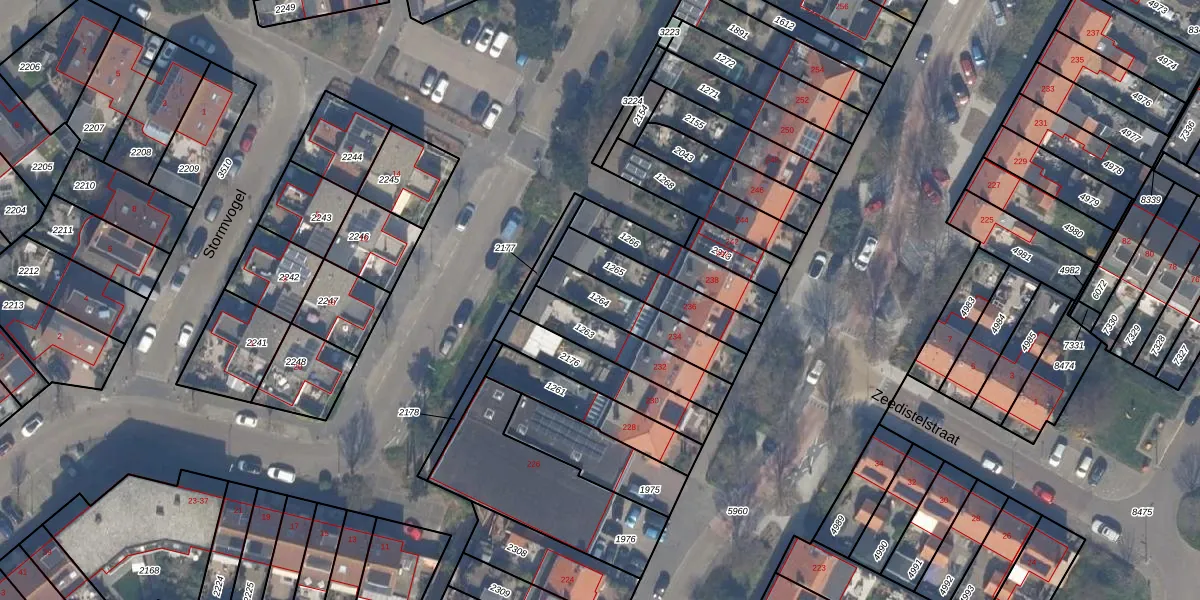 Gebruik de zoekbalk of klik op een perceel om informatie over het perceel te bekijken.
