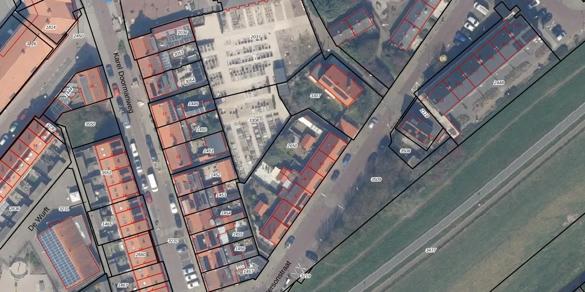 Gebruik de zoekbalk of klik op een perceel om informatie over het perceel te bekijken.