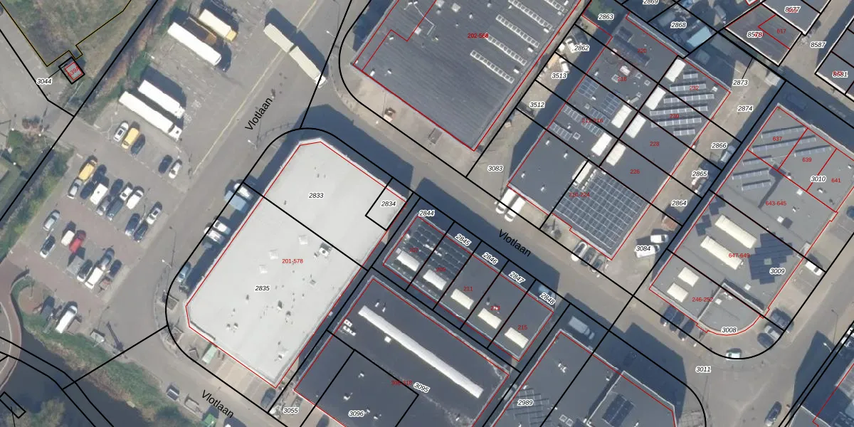 Gebruik de zoekbalk of klik op een perceel om informatie over het perceel te bekijken.