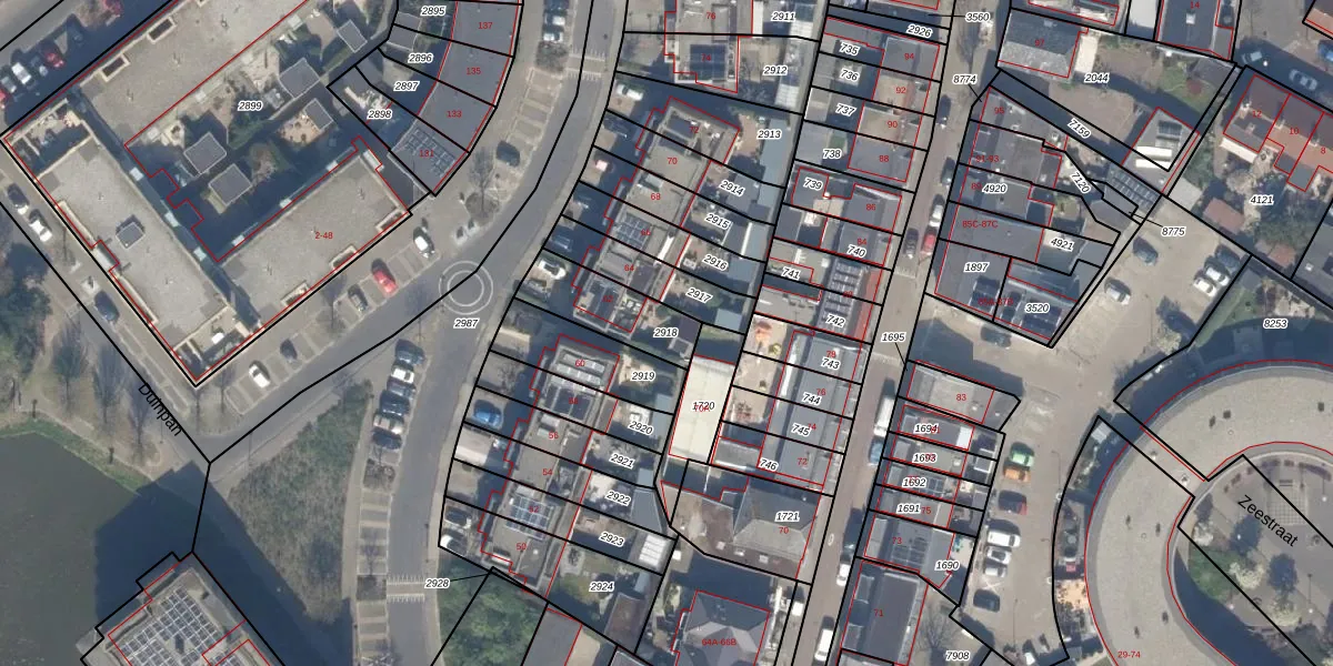 Gebruik de zoekbalk of klik op een perceel om informatie over het perceel te bekijken.