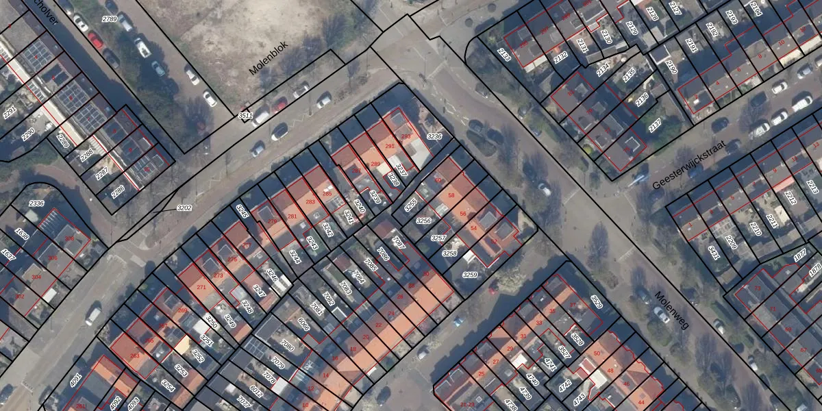 Gebruik de zoekbalk of klik op een perceel om informatie over het perceel te bekijken.