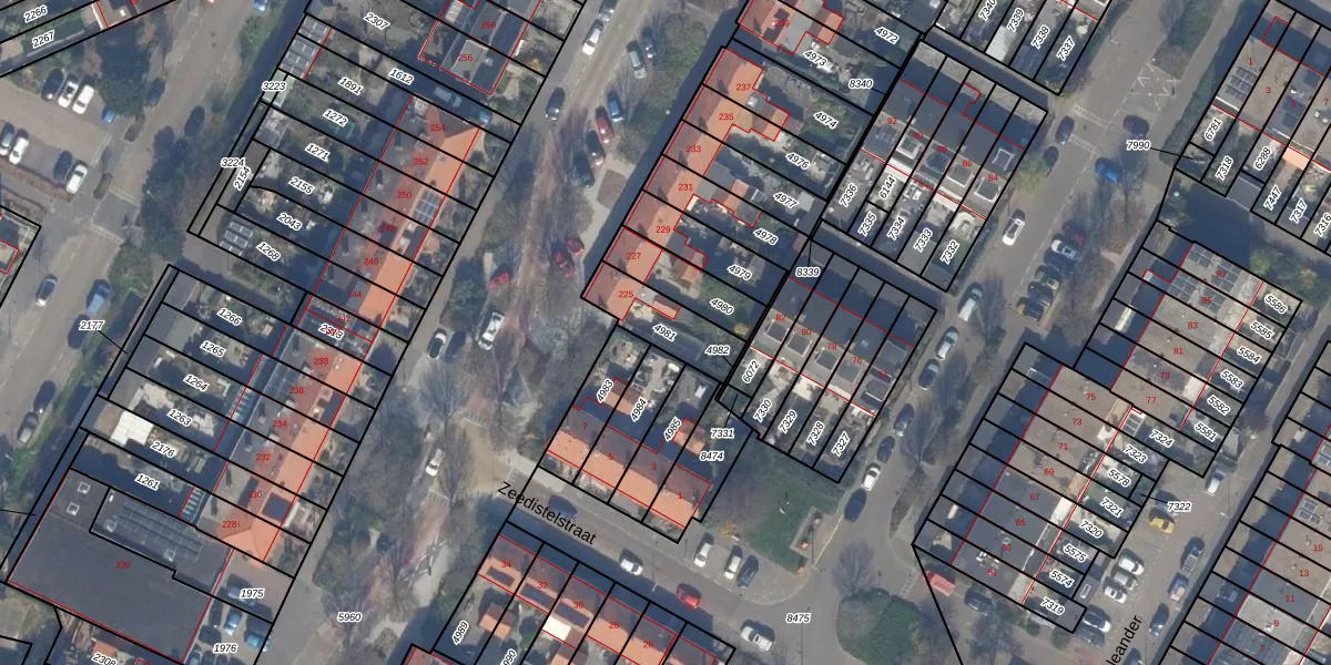 Gebruik de zoekbalk of klik op een perceel om informatie over het perceel te bekijken.