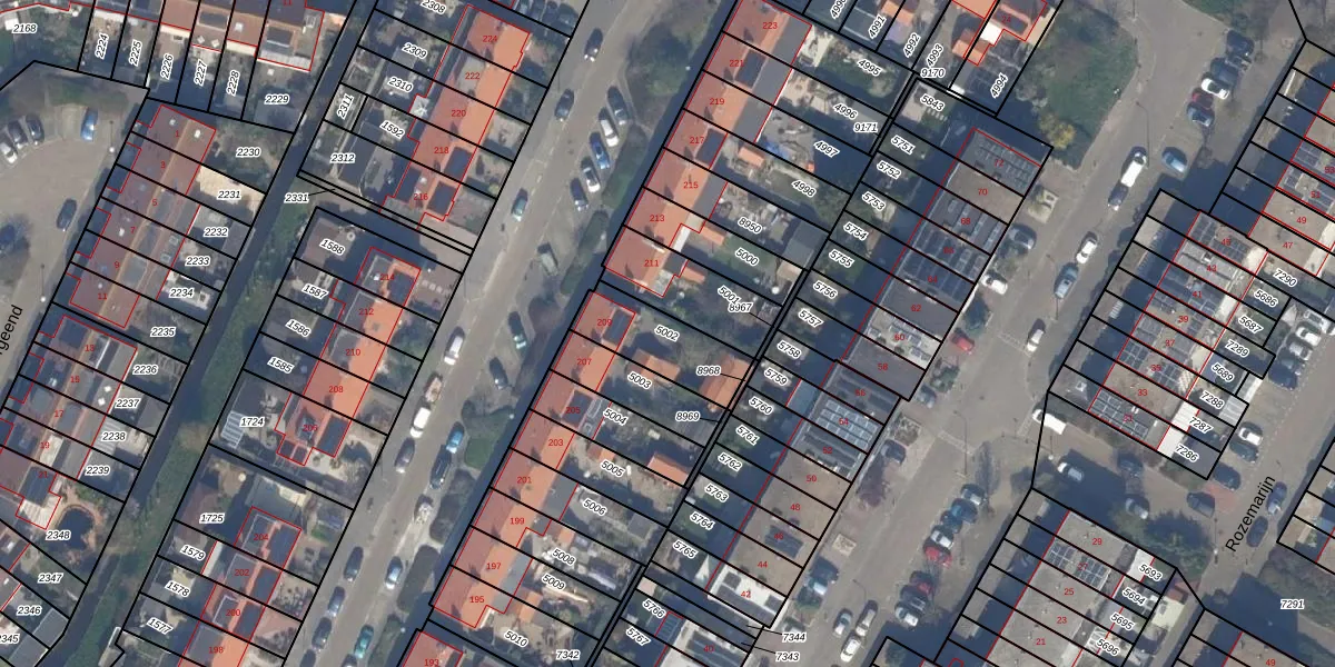 Gebruik de zoekbalk of klik op een perceel om informatie over het perceel te bekijken.