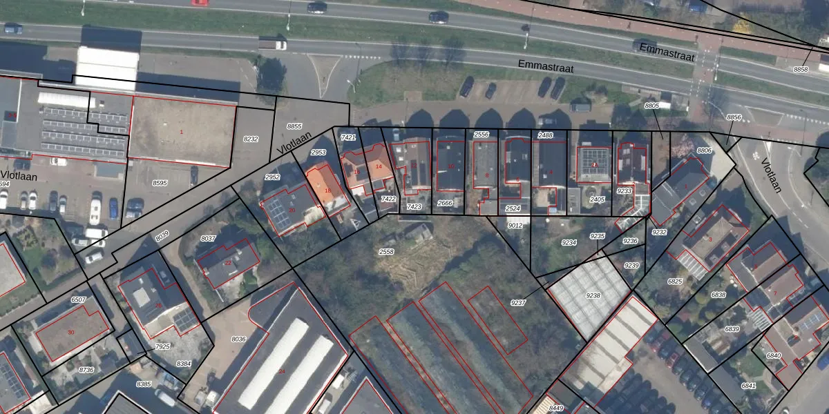 Gebruik de zoekbalk of klik op een perceel om informatie over het perceel te bekijken.
