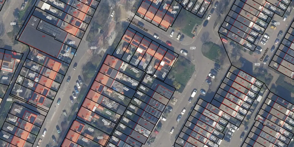 Gebruik de zoekbalk of klik op een perceel om informatie over het perceel te bekijken.