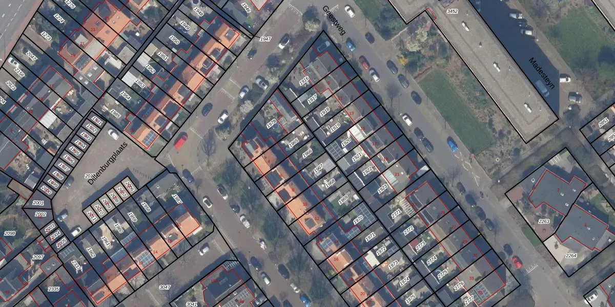 Gebruik de zoekbalk of klik op een perceel om informatie over het perceel te bekijken.