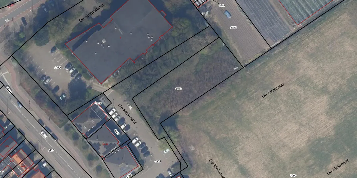 Gebruik de zoekbalk of klik op een perceel om informatie over het perceel te bekijken.