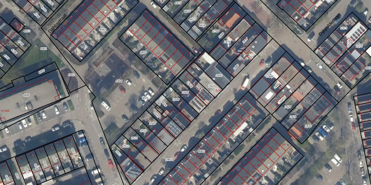 Gebruik de zoekbalk of klik op een perceel om informatie over het perceel te bekijken.