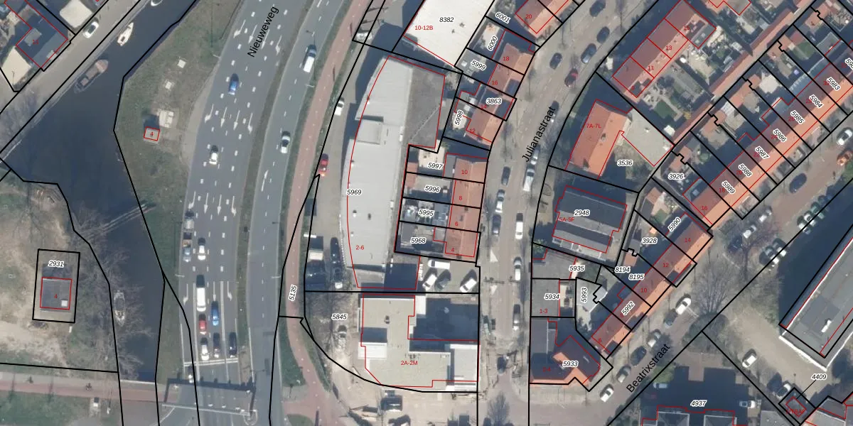 Gebruik de zoekbalk of klik op een perceel om informatie over het perceel te bekijken.