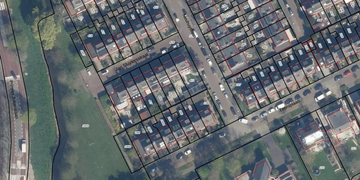 Gebruik de zoekbalk of klik op een perceel om informatie over het perceel te bekijken.