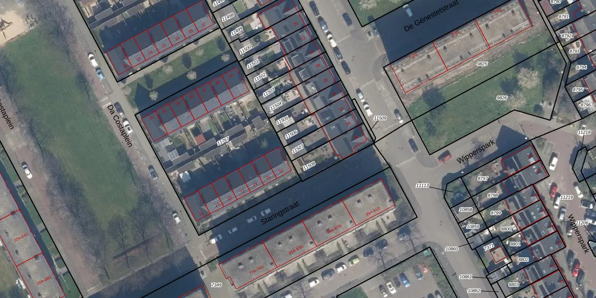 Gebruik de zoekbalk of klik op een perceel om informatie over het perceel te bekijken.