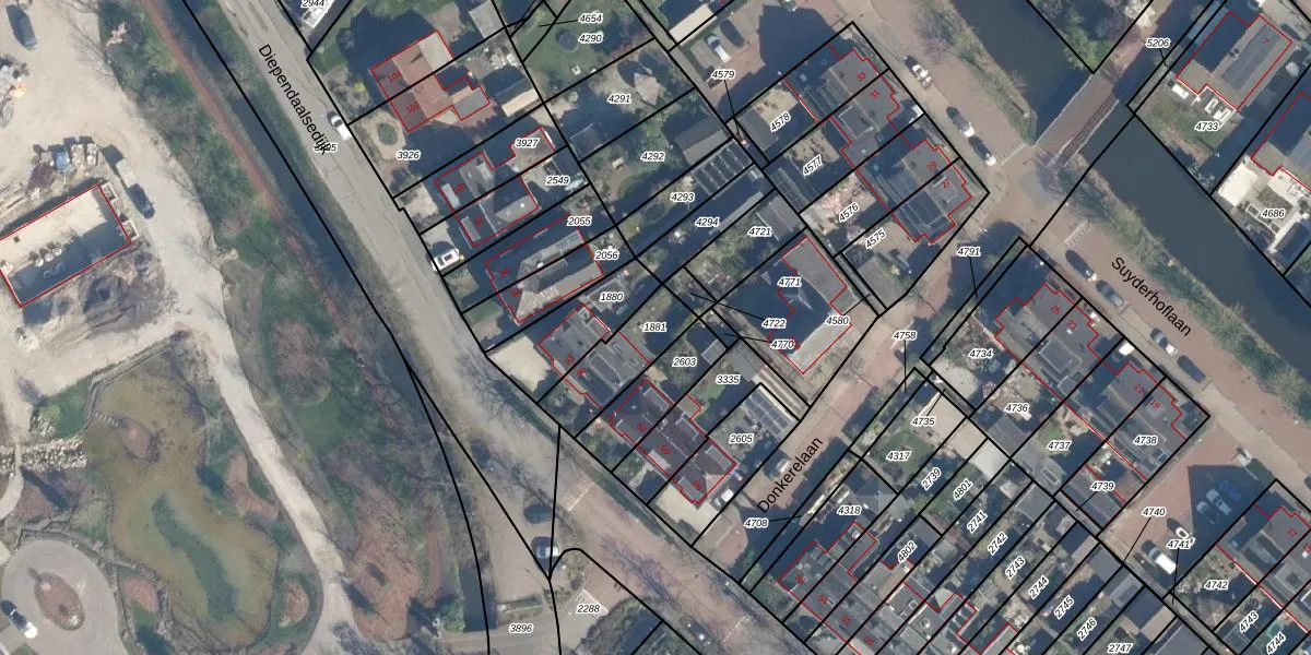 Gebruik de zoekbalk of klik op een perceel om informatie over het perceel te bekijken.