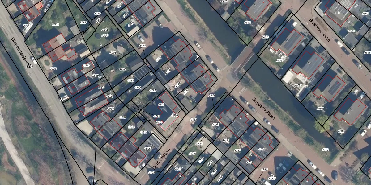 Gebruik de zoekbalk of klik op een perceel om informatie over het perceel te bekijken.