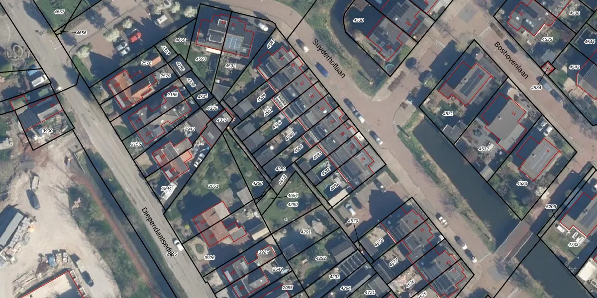 Gebruik de zoekbalk of klik op een perceel om informatie over het perceel te bekijken.