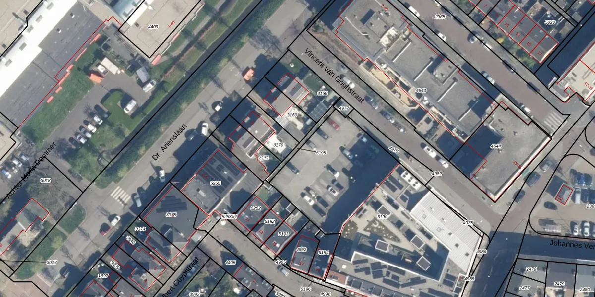 Gebruik de zoekbalk of klik op een perceel om informatie over het perceel te bekijken.