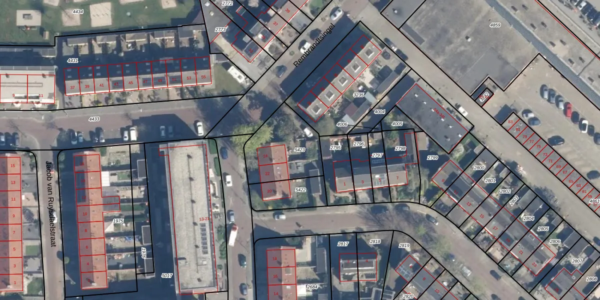 Gebruik de zoekbalk of klik op een perceel om informatie over het perceel te bekijken.