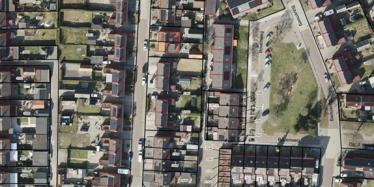 Gebruik de zoekbalk of klik op een perceel om informatie over het perceel te bekijken.