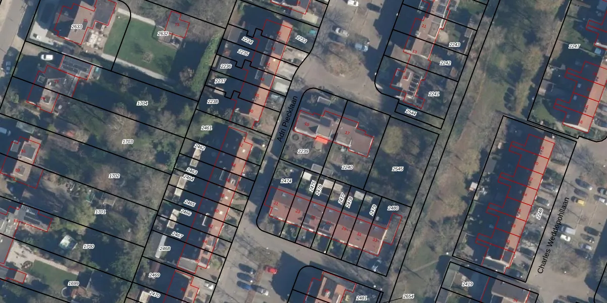 Gebruik de zoekbalk of klik op een perceel om informatie over het perceel te bekijken.