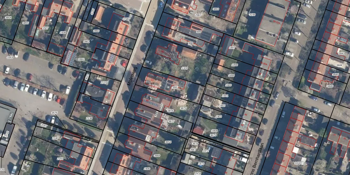 Gebruik de zoekbalk of klik op een perceel om informatie over het perceel te bekijken.