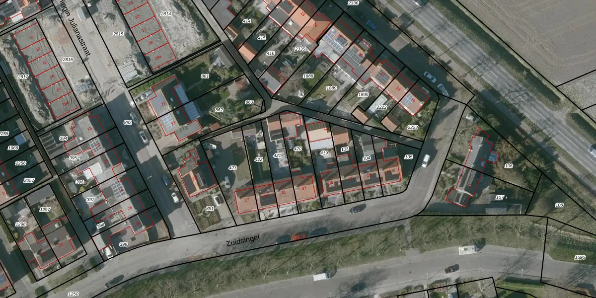 Gebruik de zoekbalk of klik op een perceel om informatie over het perceel te bekijken.