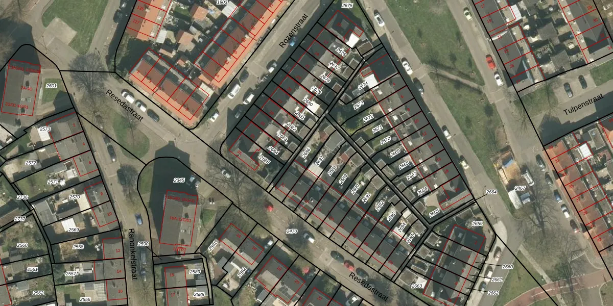 Gebruik de zoekbalk of klik op een perceel om informatie over het perceel te bekijken.