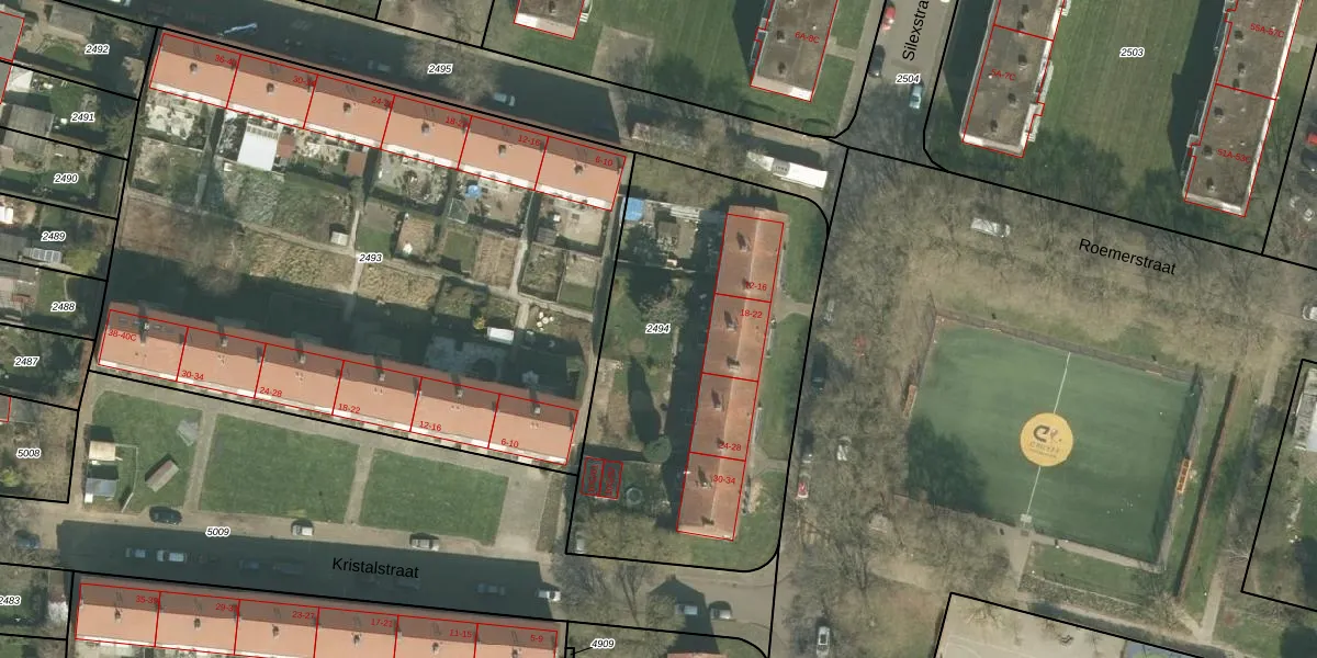 Gebruik de zoekbalk of klik op een perceel om informatie over het perceel te bekijken.
