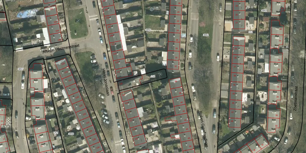 Gebruik de zoekbalk of klik op een perceel om informatie over het perceel te bekijken.