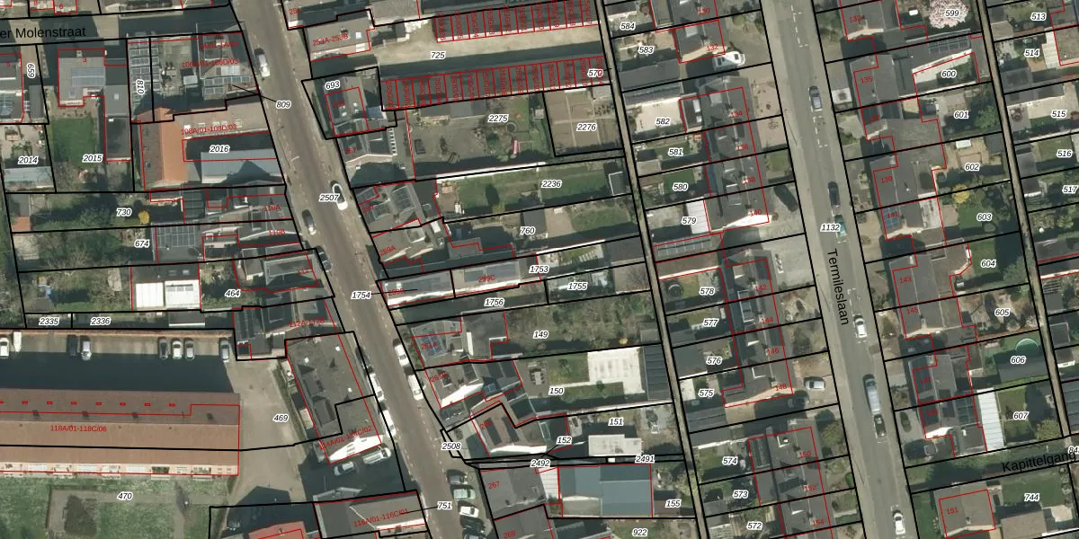 Gebruik de zoekbalk of klik op een perceel om informatie over het perceel te bekijken.