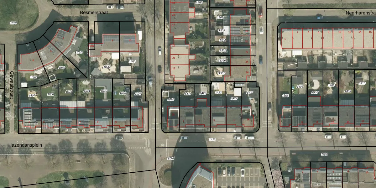 Gebruik de zoekbalk of klik op een perceel om informatie over het perceel te bekijken.