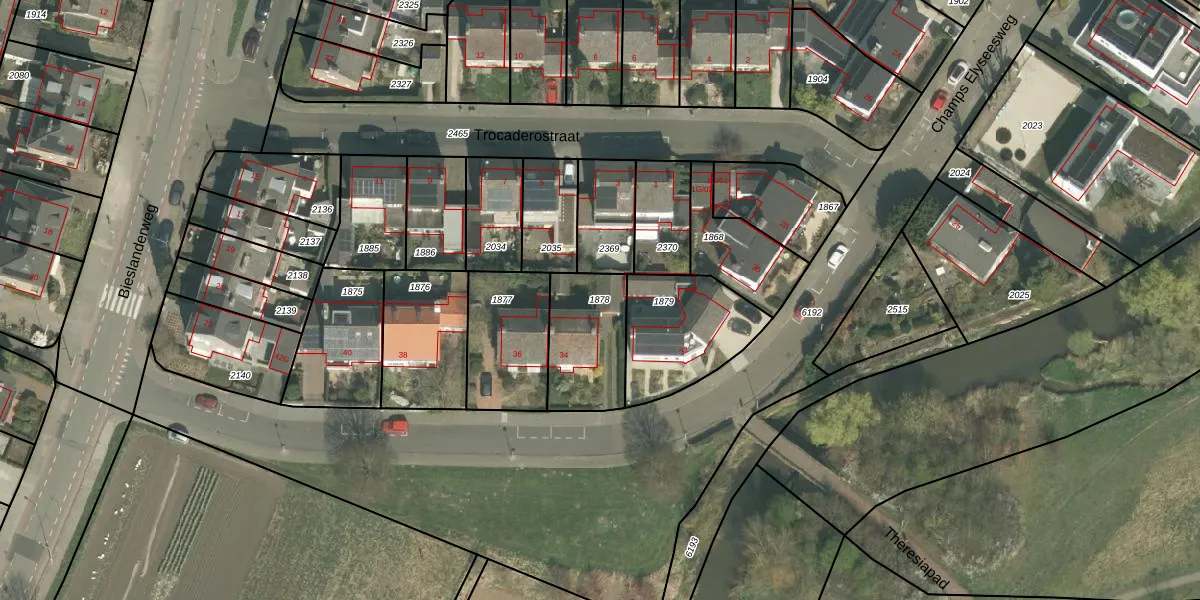 Gebruik de zoekbalk of klik op een perceel om informatie over het perceel te bekijken.