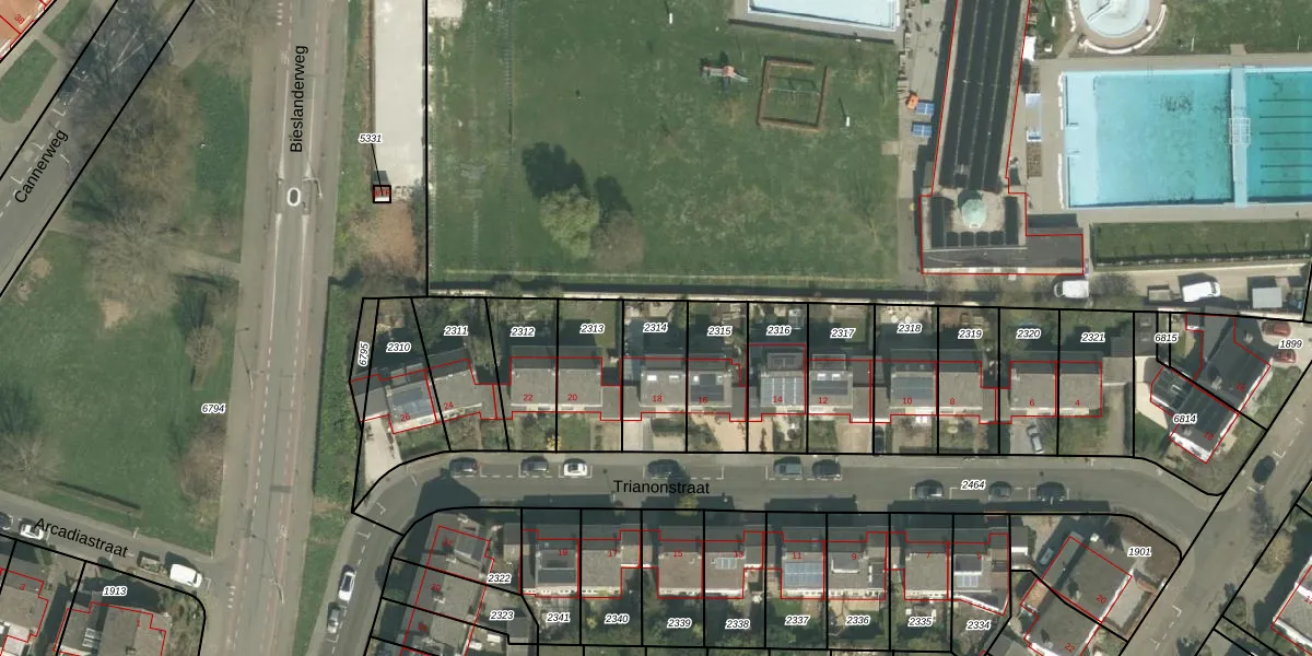 Gebruik de zoekbalk of klik op een perceel om informatie over het perceel te bekijken.