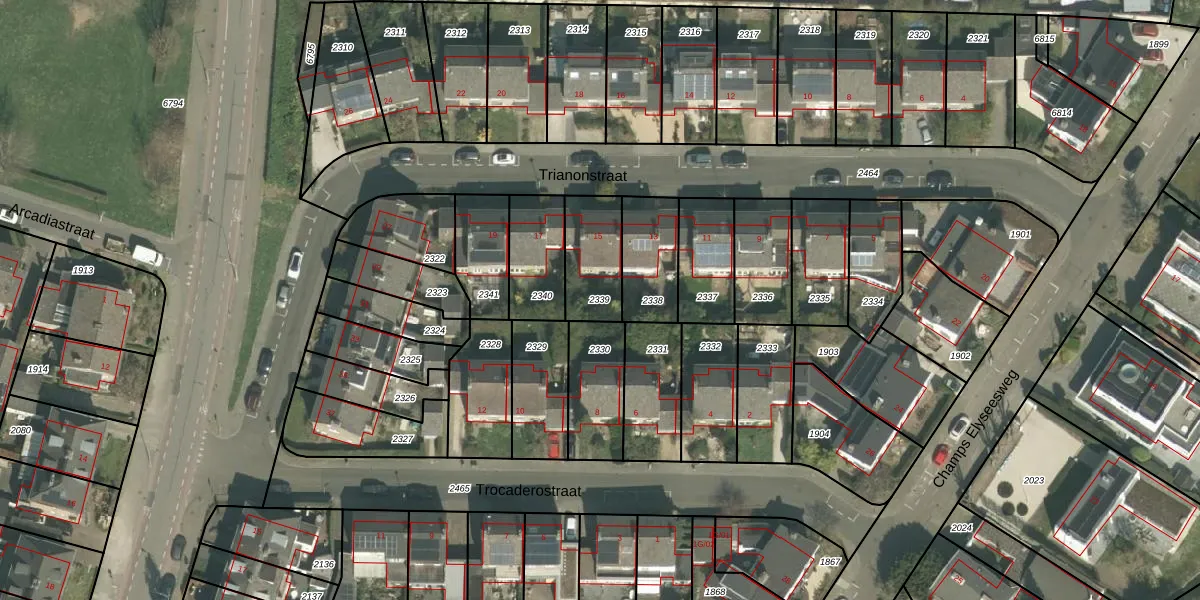 Gebruik de zoekbalk of klik op een perceel om informatie over het perceel te bekijken.