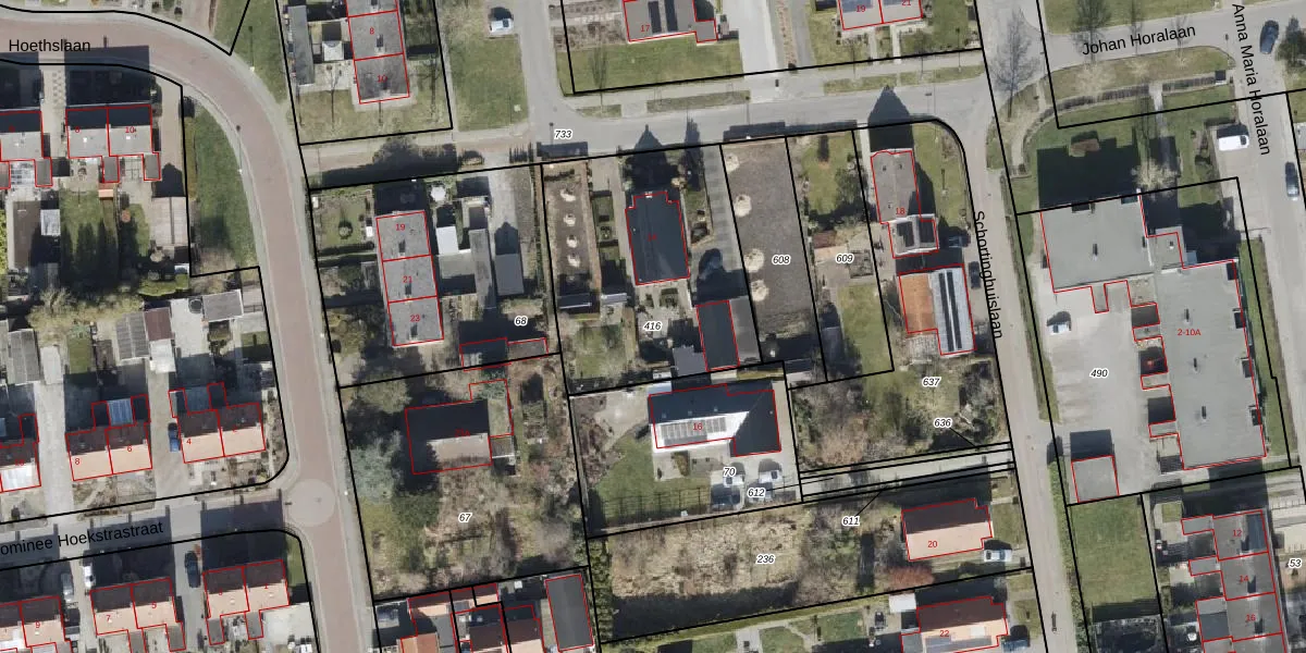 Gebruik de zoekbalk of klik op een perceel om informatie over het perceel te bekijken.