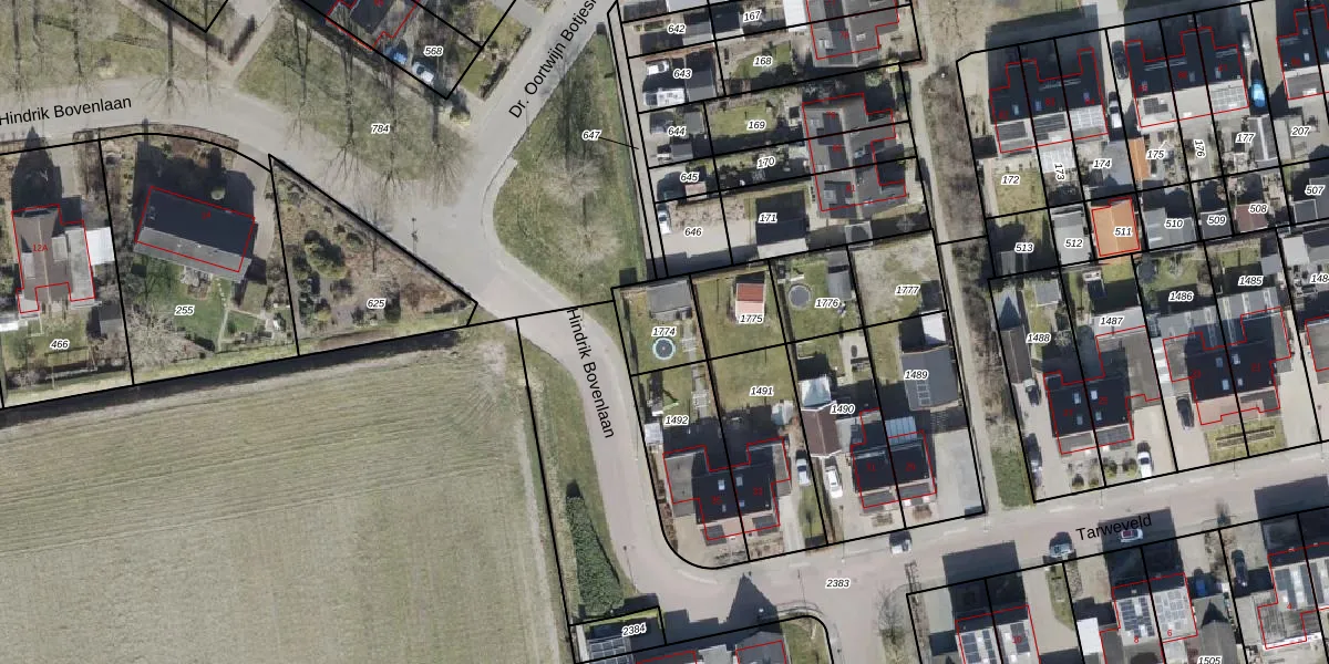 Gebruik de zoekbalk of klik op een perceel om informatie over het perceel te bekijken.