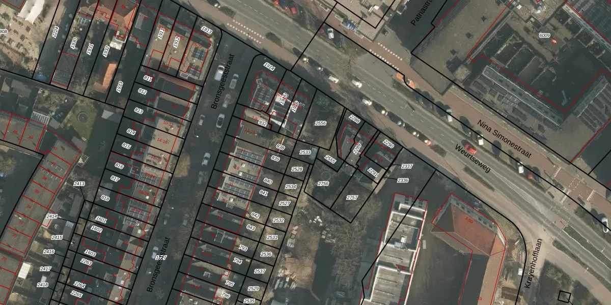 Gebruik de zoekbalk of klik op een perceel om informatie over het perceel te bekijken.