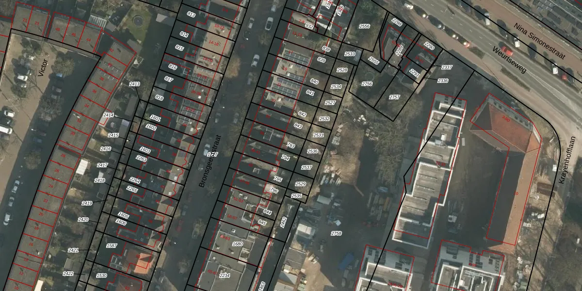 Gebruik de zoekbalk of klik op een perceel om informatie over het perceel te bekijken.