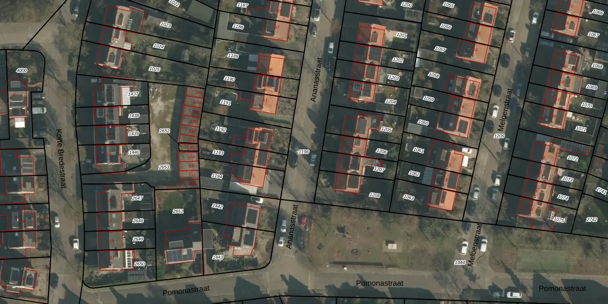 Gebruik de zoekbalk of klik op een perceel om informatie over het perceel te bekijken.